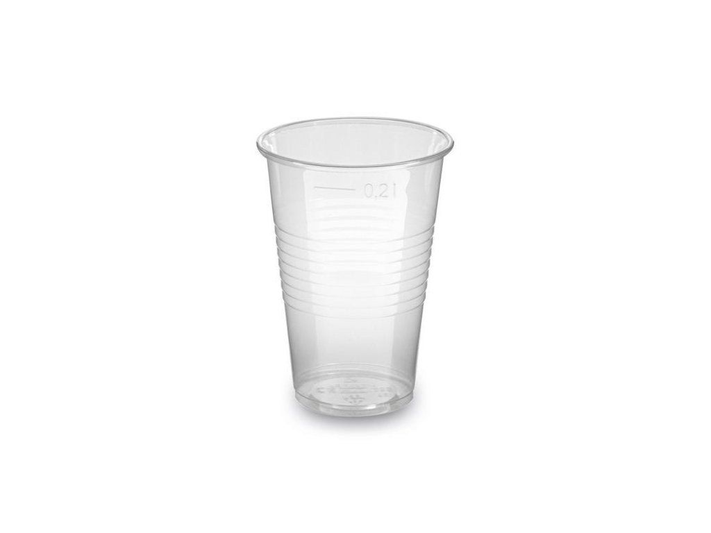 Průhledný kelímek na jedno použití k podávání nápojů, např. limonády nebo alkoholu. Kelímky jsou opatřeny cejchem