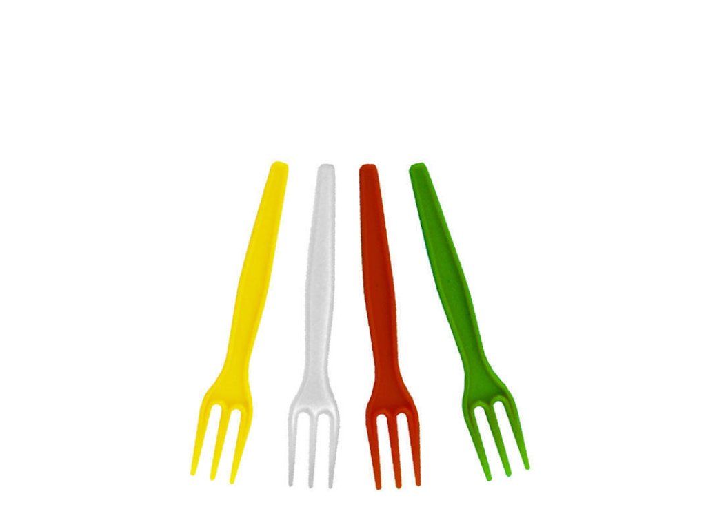 Plastová napichovátka na hranolky a jiné pokrmy. V každém balení je smíchaných několik různých barev.