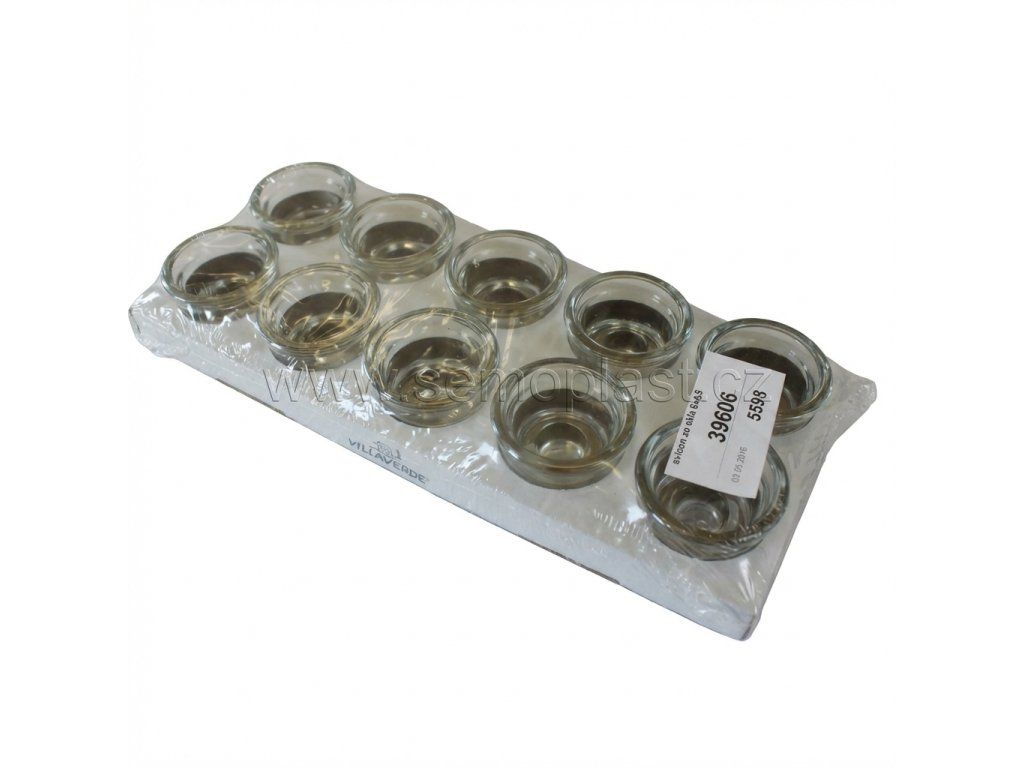 Skleněná nádoba na svíčky, vhodná zejména na svíčky čajové. Lze zakoupit po kusu, nebo balení (10ks). Průměr otvoru 4.5cm, výška 6cm.