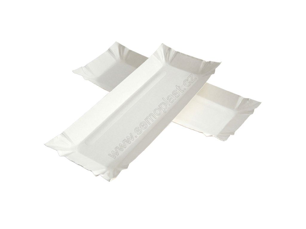Papírový tácek vhodný k podávání cukroví, zákusků nebo i grilovaných klobás a jiného občerstvení. Okraj je přibližně 2cm široký.